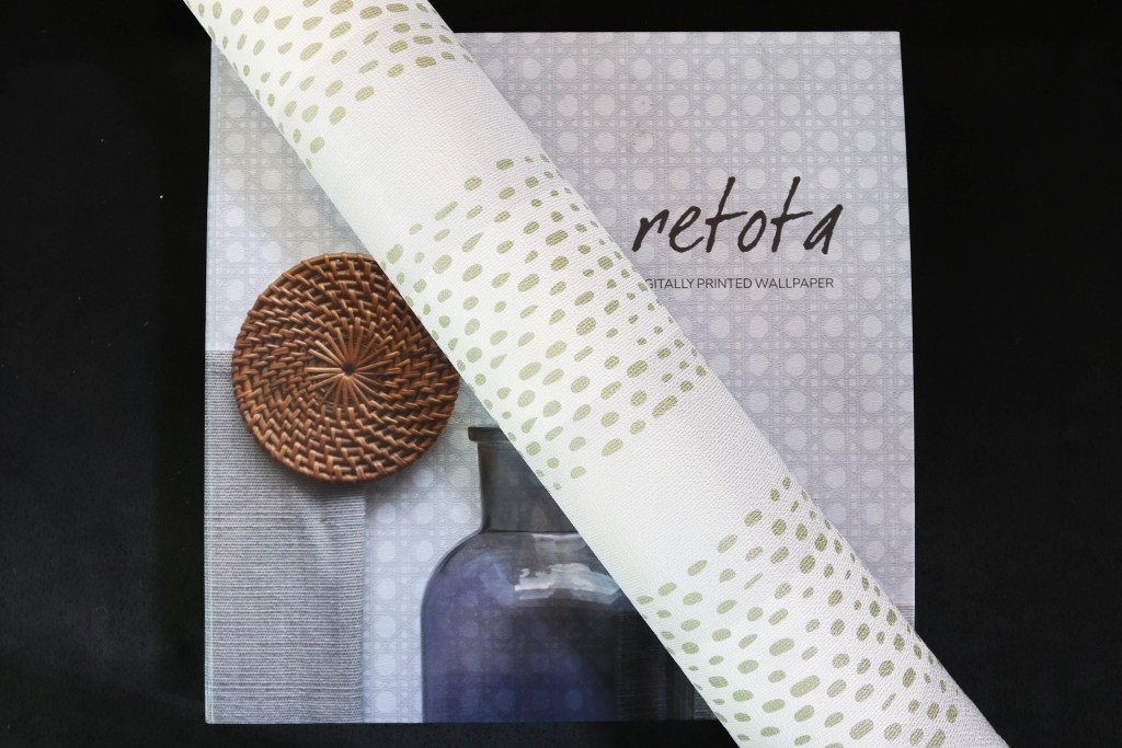 Wallpaper yang di buat dengan teknik digital print ini desainnya di buat dengan goresan tangan , sehingga ketidak simetrisannya tetap terlihat.(Menggabungkan proses manual dan digital)