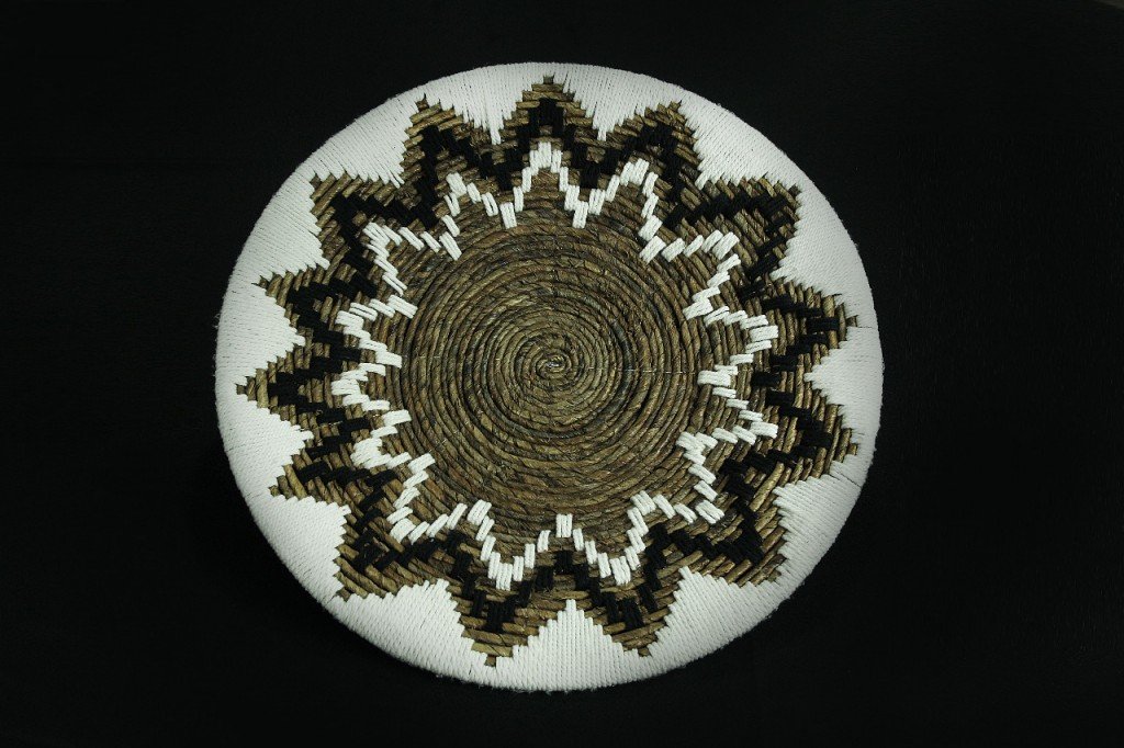Material terbuat dari pelepah pisang yang dikeringkan dan dikombinasikan dengan benang.